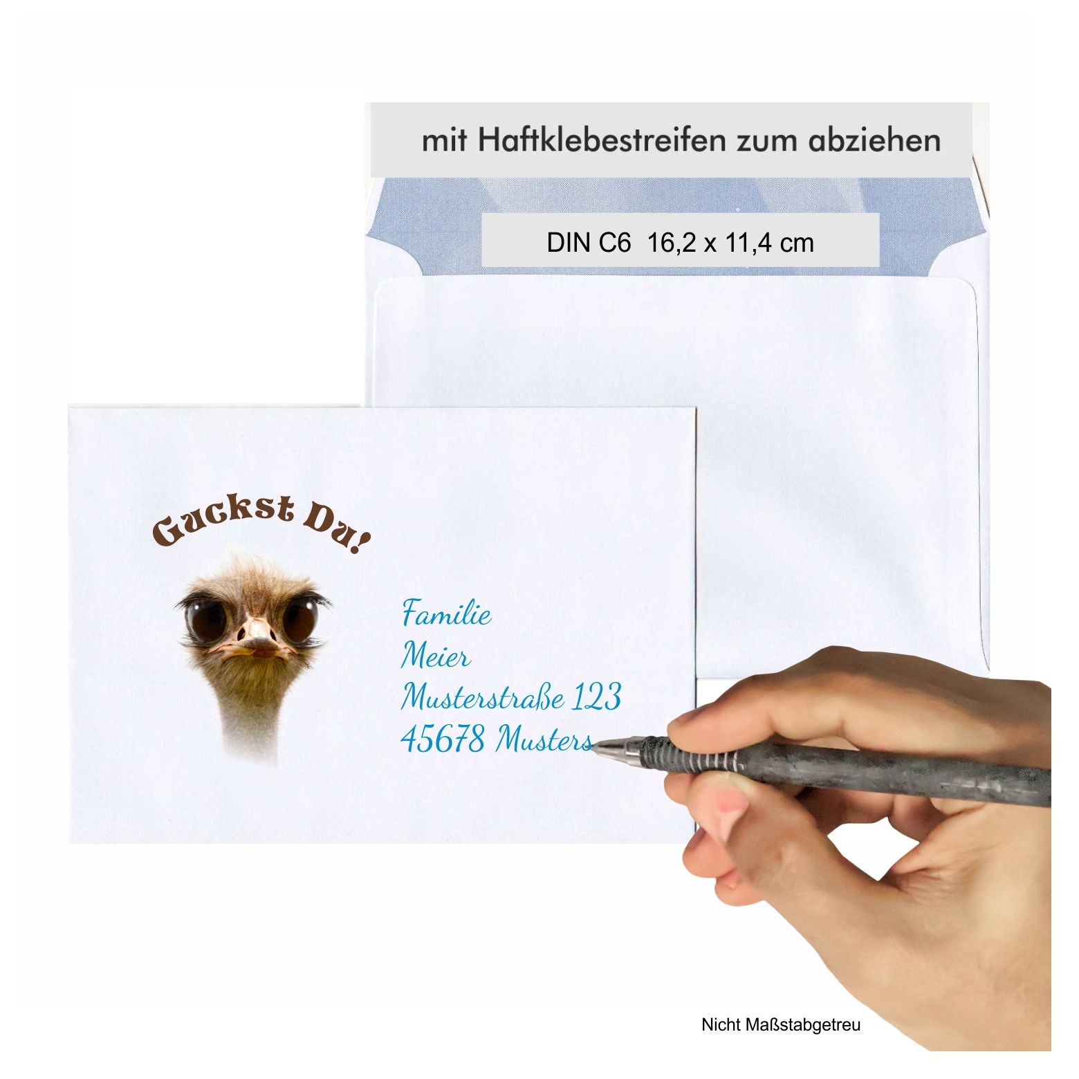 Weiße Briefumschläge C6, nassklebend - mit Motiv: Lustiger Vogel